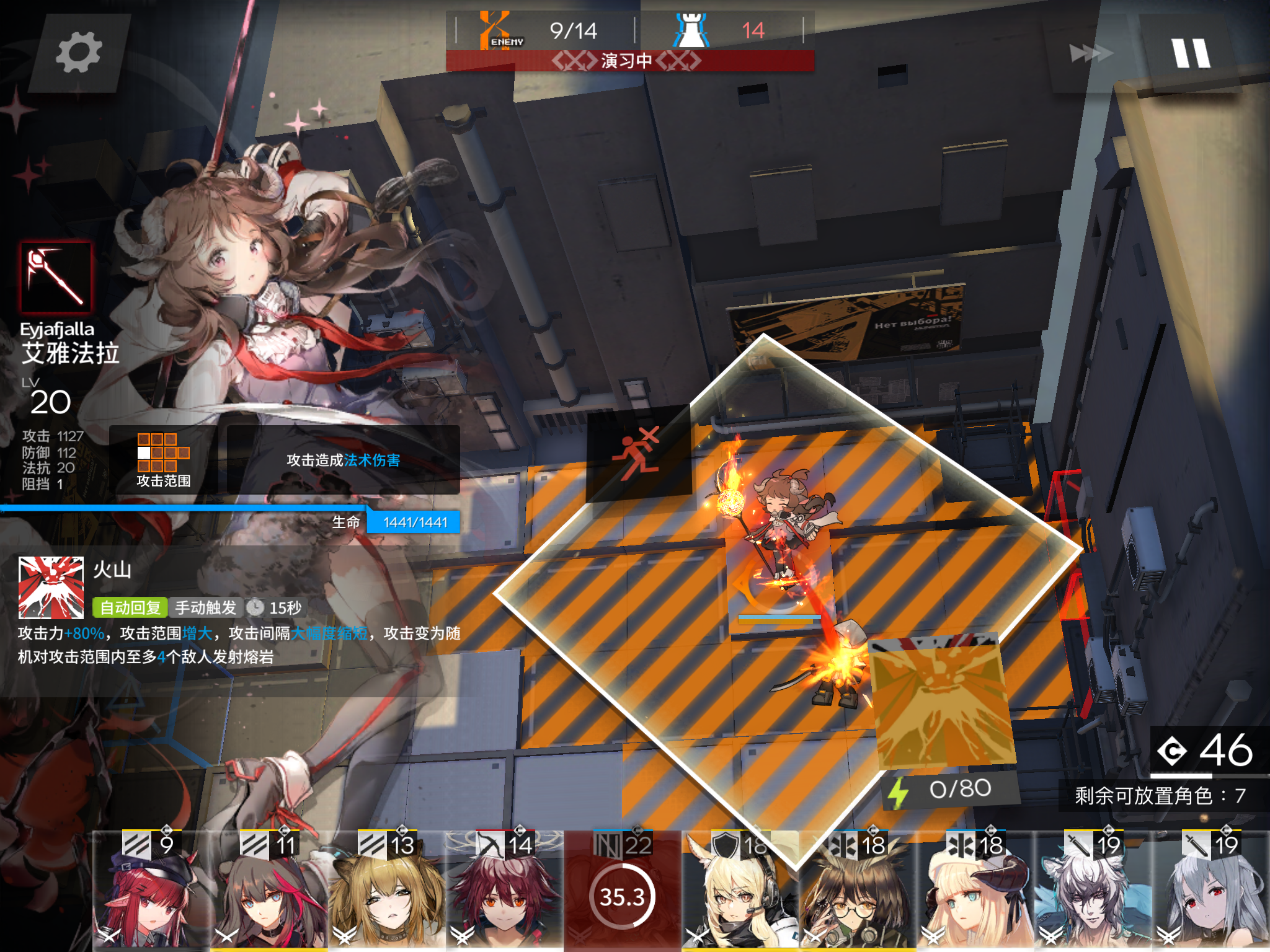 绵羊火山与银灰的技能相仿,也是高额的群伤,切绵羊攻击速度较快,持续时间内很快就能清理掉小怪但是一样的回复速度较慢的问题,并不能常驻,作为绵羊常驻的二技能输出手段却又不能控制而且范围较小,但是作为低费群法已经是很大优势。技能持续时间较短但是爆发很高,同样的是回复速度较慢,但是范围极大。