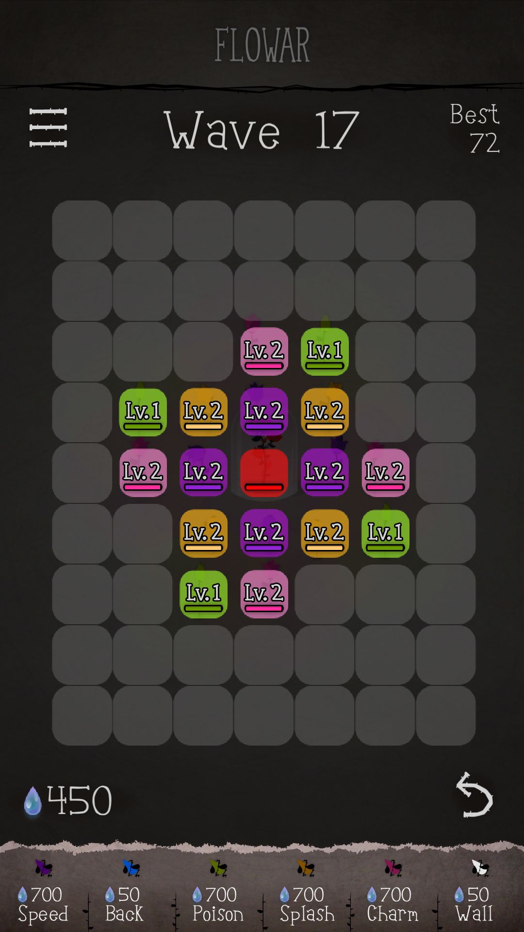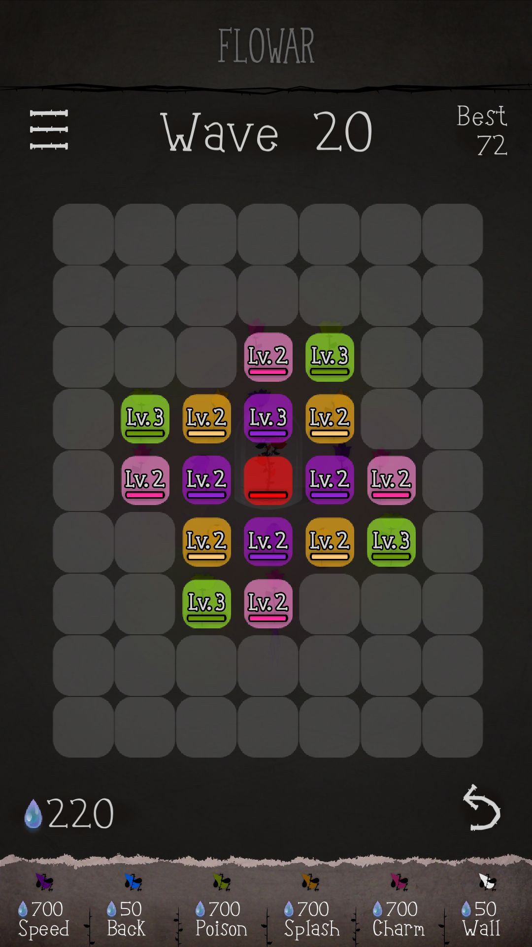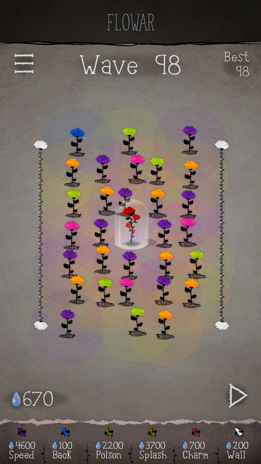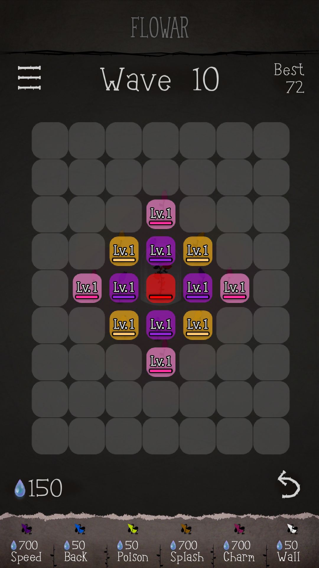 开局先围着玫瑰种 可以先点开始然后看黑团子从哪个方向来 再种花 一紫一黄这样 把玫瑰围起来 10关之前一定要在四周种上粉花拉boss 注意花的血量 半血了就浇水回血