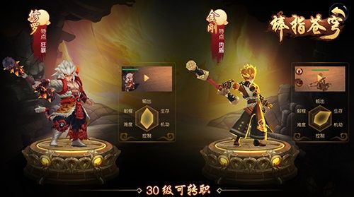 当玩家将猴小圣的等级提升到30级、完成相关任务后,即可转职成为“修罗”或“金刚”。