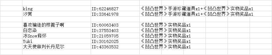 活动奖品:《凹凸世界》手游珍藏道具x1+《凹凸世界》实物奖品x1,共2位