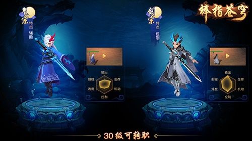 在《棒指苍穹》游戏里,“龙太子”这一职业被设定为「仙族新生代中最出类拔萃的少年」。他擅长的手段,是利用手中长剑发出剑气、进行中距离的攻击。当龙太子等级提升到30级,还可以在「剑宗」和「气宗」两个分支中选择一条发展路线!