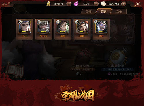 王侯列传,诸子百家 来《荣耀战国》招募传奇武将