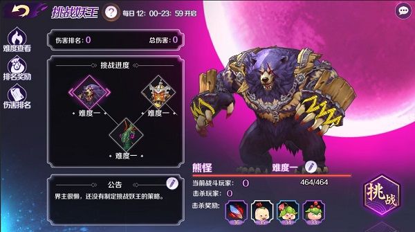 当玩家创建或者加入的小世界达到3级后,便可开启“挑战妖王”玩法。在这个神仙打架都是家常便饭的三界里能够称得上妖王,实力自然不可小觑。战斗中玩家只可出场一个缘神,直至战死方可切换。加之每日妖王数量众多,而可出阵的缘神数量却有所限制,因此与小世界中其余玩家共同挑战方可更快速拿下妖王,减少战损。此时作为一名合格的界主,就要善加利用留言板功能将界中各位玩家凝聚起来。战前约定好大致的挑战时间,出战缘神配比以及相关难点的提示。当战胜每日所有妖王后的奖励也是相当丰厚,小世界中所有玩家都可分享到一份战果!