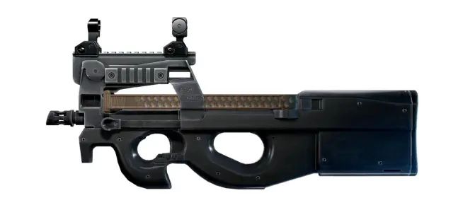 P90是FN公司于1986年研制的一款个人防卫武器(画重点),该枪采用无托结构,犊牛式供弹设计,有利于射手单手操作,固定枪托也在特定情况下改善了射击时的后坐力,提高了枪械精度;同时由于枪管较长,子弹加速时间长,弹头初速高,近距离子弹动能更大,加强了杀伤力;P90相比其他的无托枪瞄准基线更低,有利于射手瞄准。扳机上采用了AUG式的压感单双动,通过力道不同改变射击模式,利于射手精确杀伤。