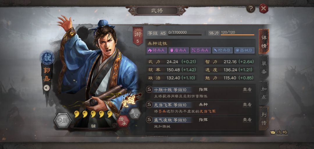 这是俩个英雄的六维数值,周瑜的物抗比郭嘉要高,