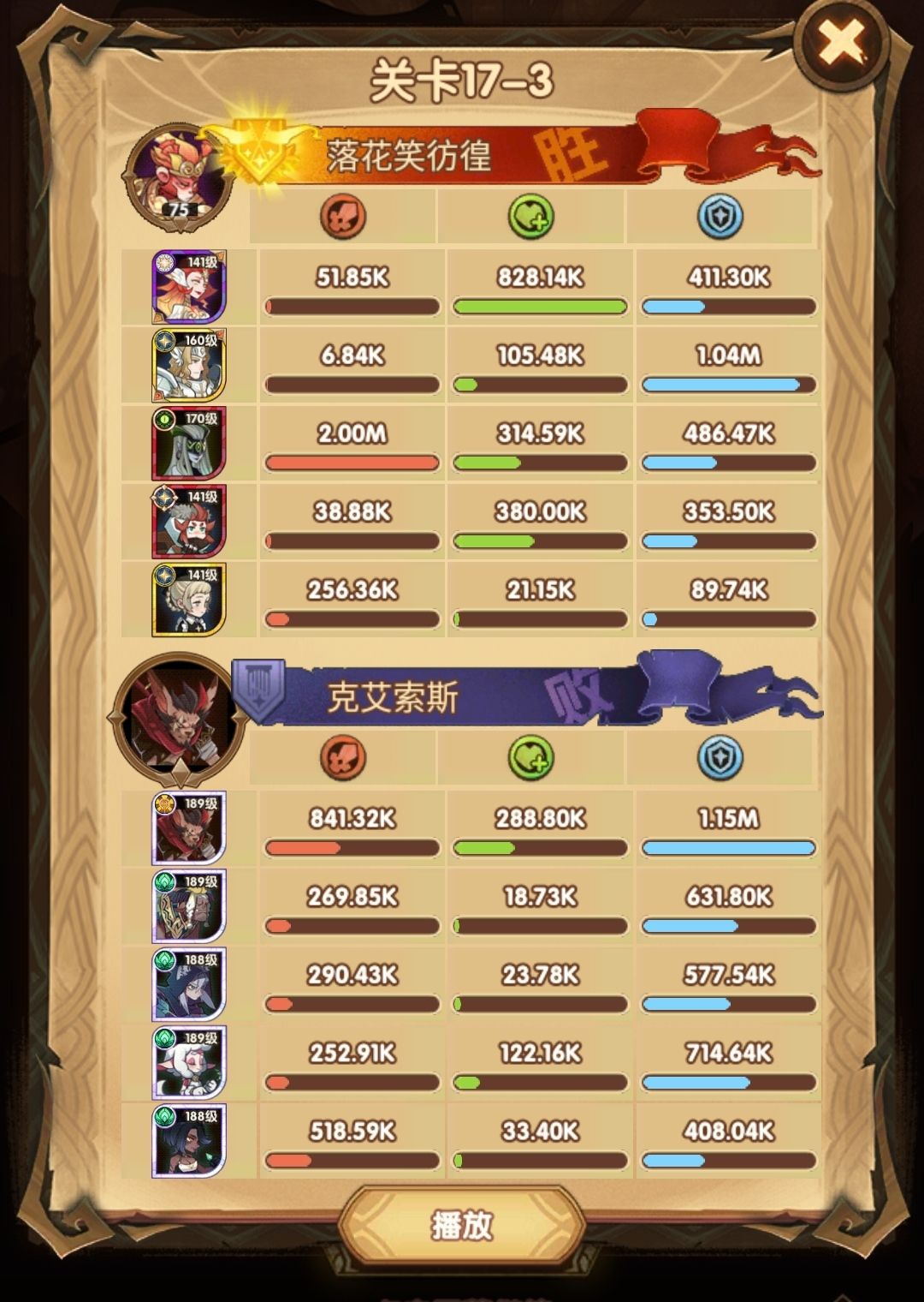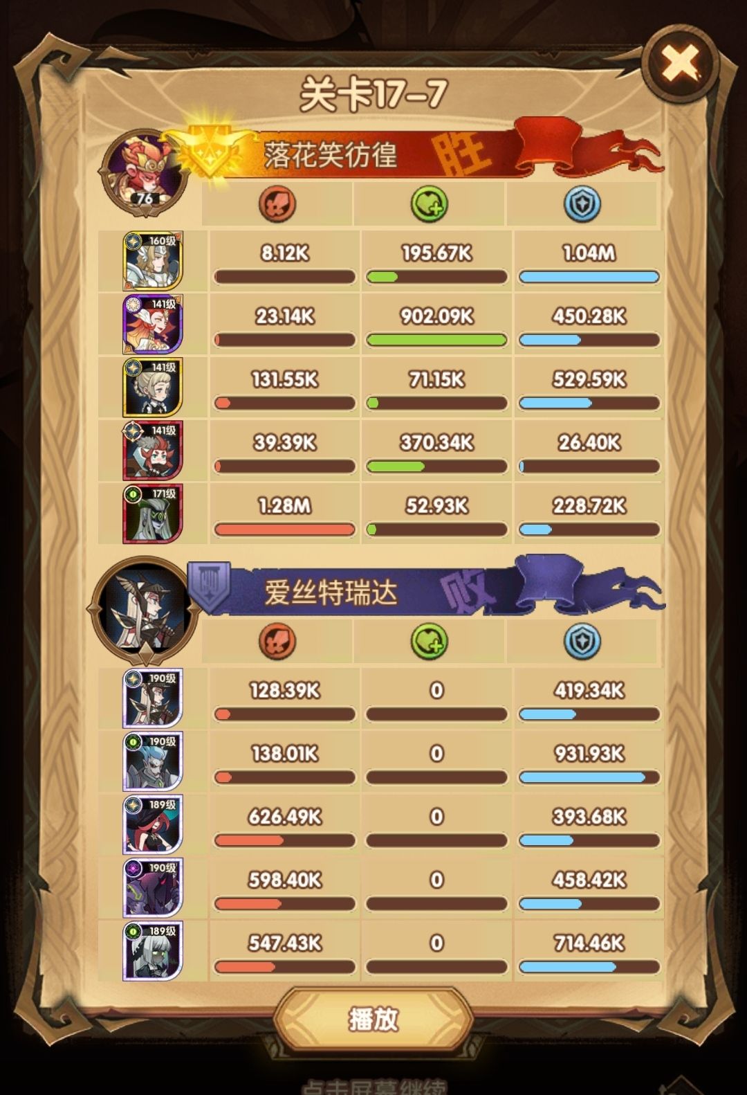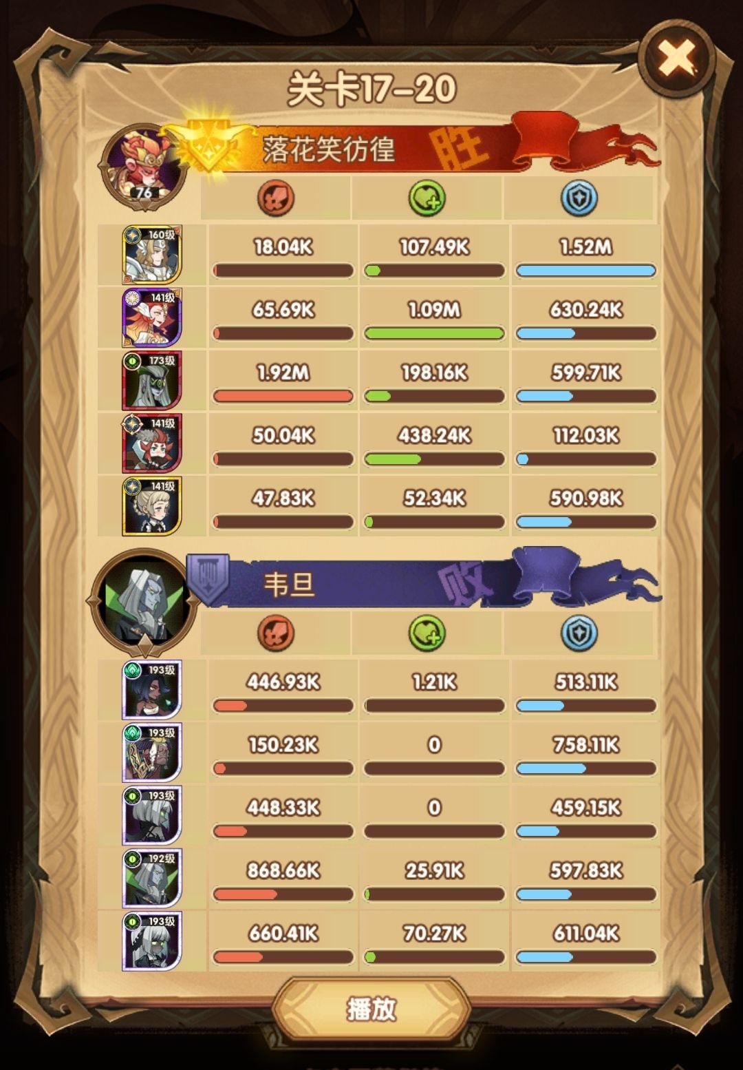 17-40阵容站位(本来是卡一夜再推,想想中午到晚上快12小时了,宝箱可能有了,大半夜来推一下,果然多re几次过了,运气说好也赖出了个之前卡出的白板衣服,难受)