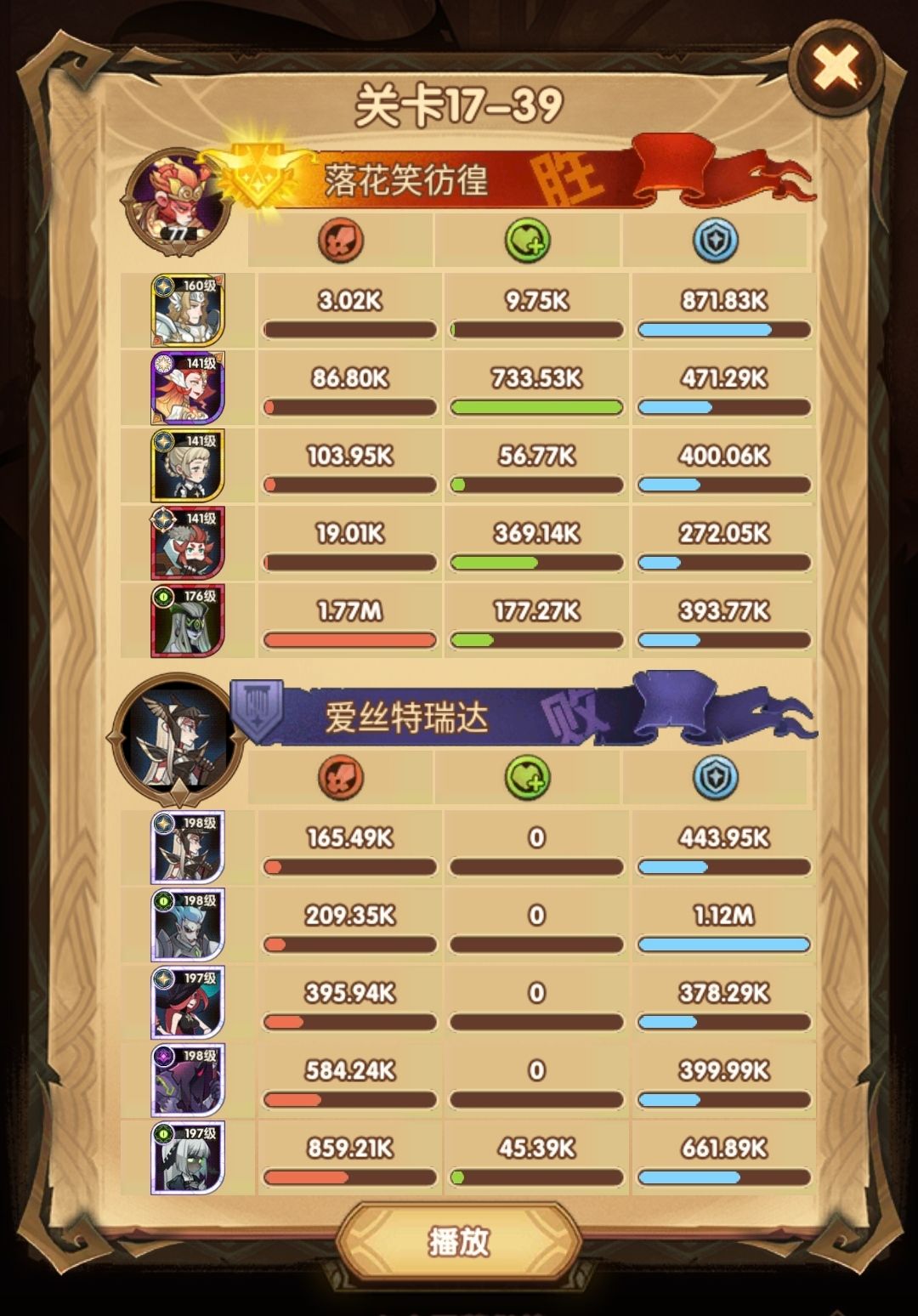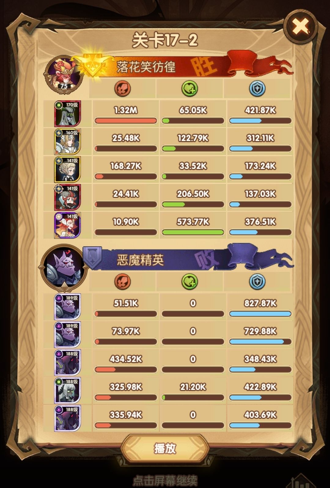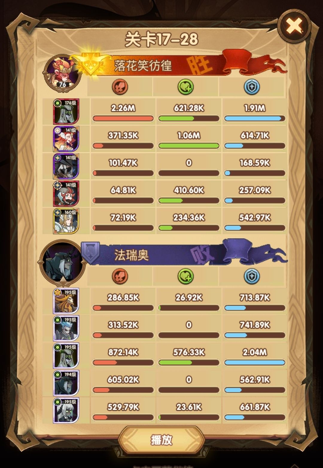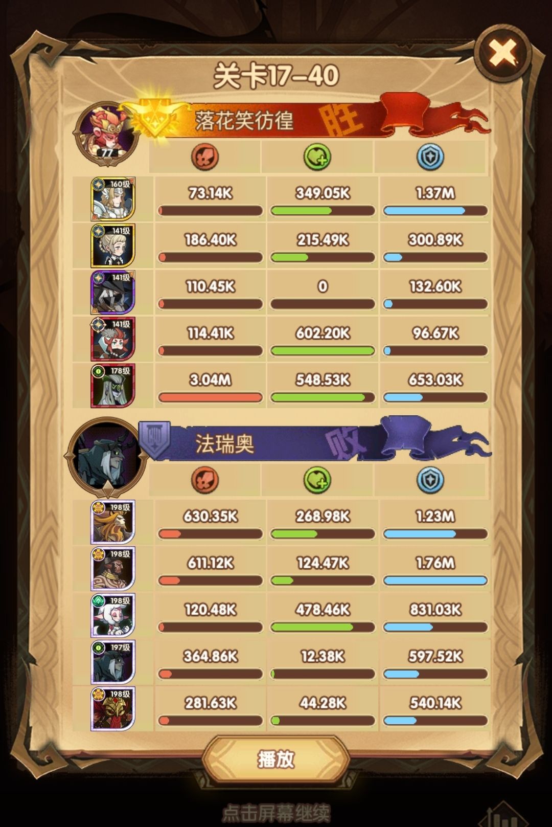 17-40阵容站位(本来是卡一夜再推,想想中午到晚上快12小时了,宝箱可能有了,大半夜来推一下,果然多re几次过了,运气说好也赖出了个之前卡出的白板衣服,难受)