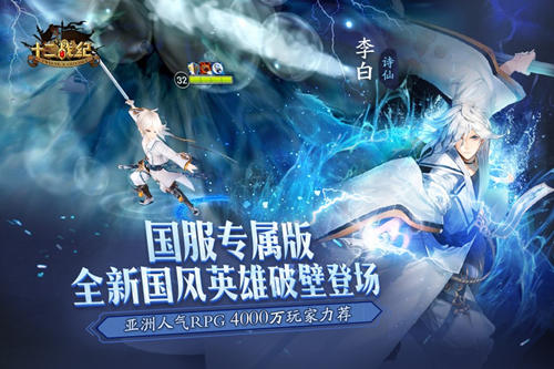 伴随着《十二战纪》国服上线的,还有诗仙李白、霸王项羽等国服专属英雄。人物形象或潇洒飘逸,或霸气绝伦,技能特效也是华丽无比,在西方奇幻背景的世界观下,展示了东方的魅力,尽显东西方融合之美。