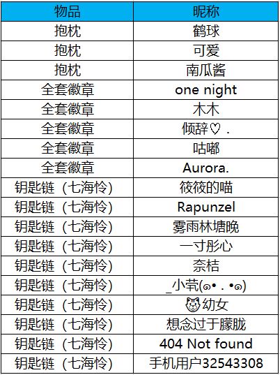 恭喜各位店长中奖,大家快到Q群(130408980&862455656)恭喜各位店长中奖,大家快到Q群(130408980)中,联系群管@小祈,留下姓名电话地址,然后就能领到礼包啦,周边统计结束后会寄出,要抓紧哦,本周打算寄出一波!
