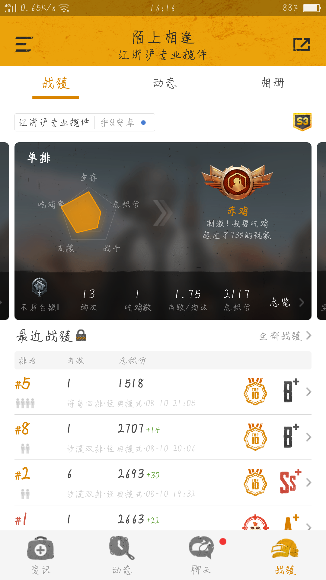 我手机上下载了刺激战场,电脑上下载了腾讯手游助手,里面安装了刺激战场!我自从玩这个游戏起,在手机上玩的时间不足十分之一,很多时间在电脑上玩的因为手机太渣了,很少用手机。