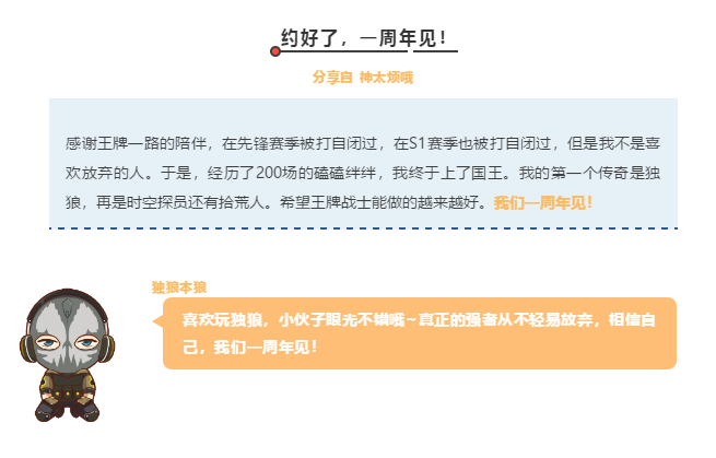 4.从内测开始算起的话,玩王牌战士已经有将近一年了。一路陪伴这个游戏至今,也算是风雨中的见证者。多的就不说了,还是那句话,王牌战士,加油!