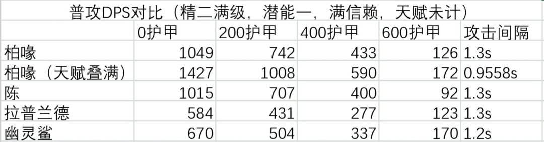 ○普攻DPS对比