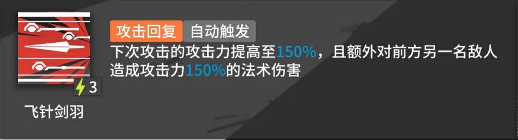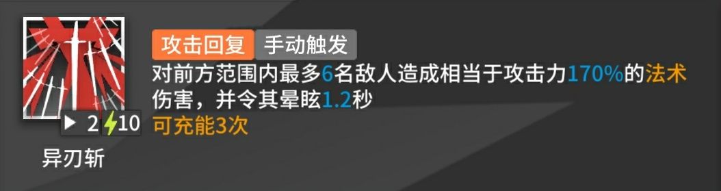 专三数据:攻击力提高至180%,造成攻击力180%法术伤害,技力消耗2