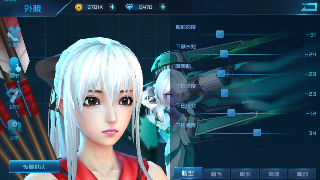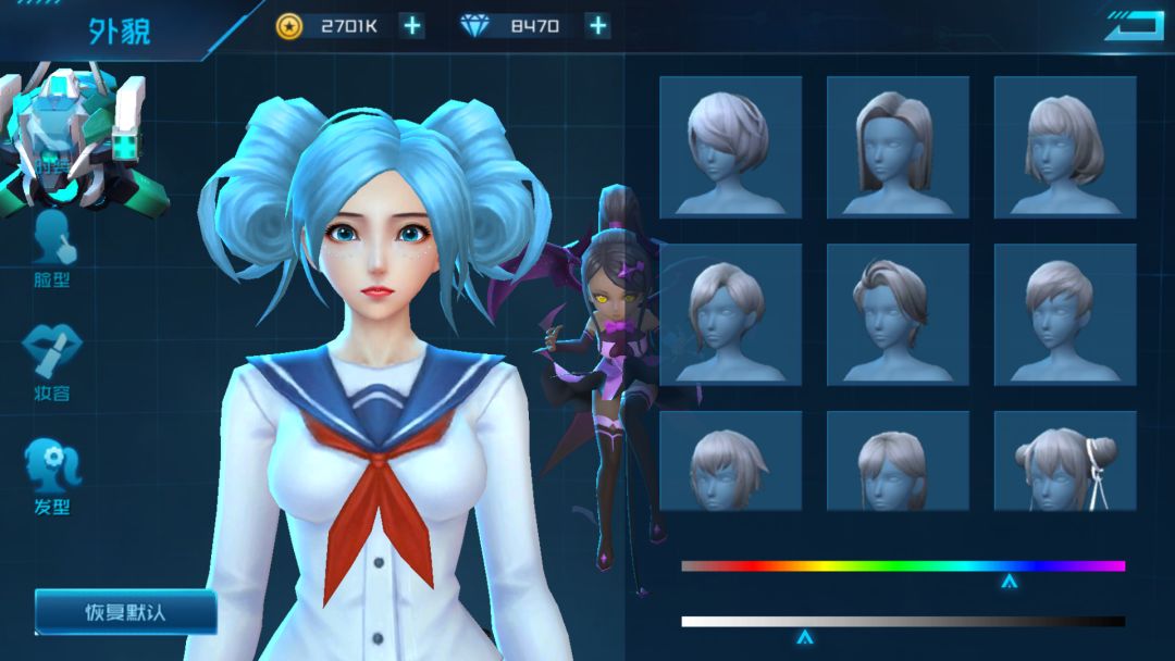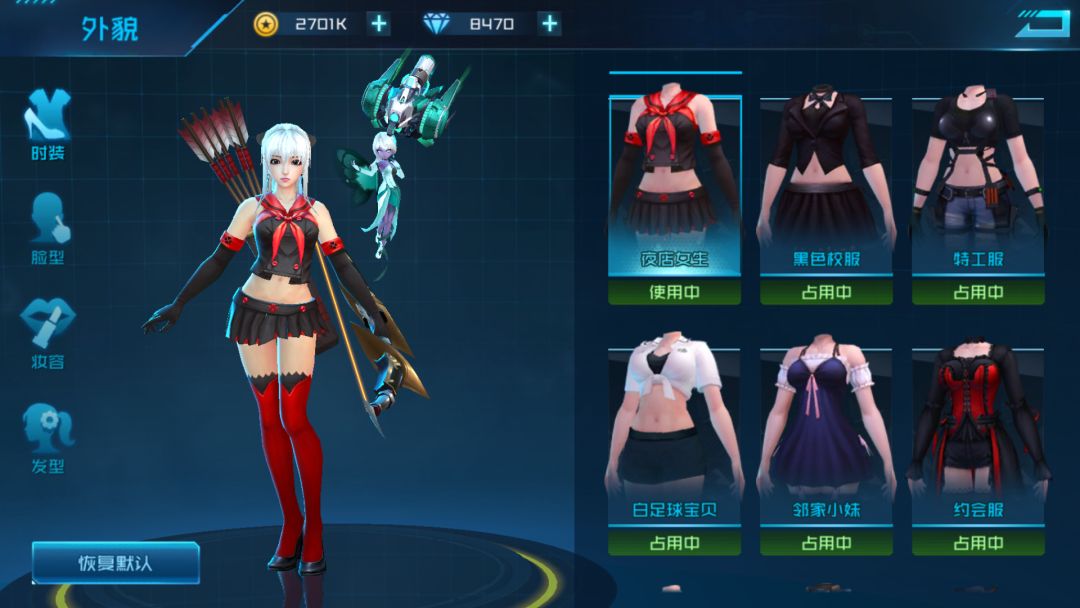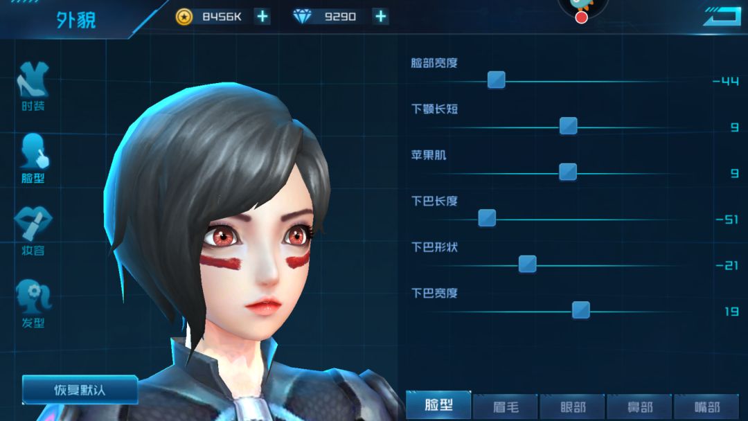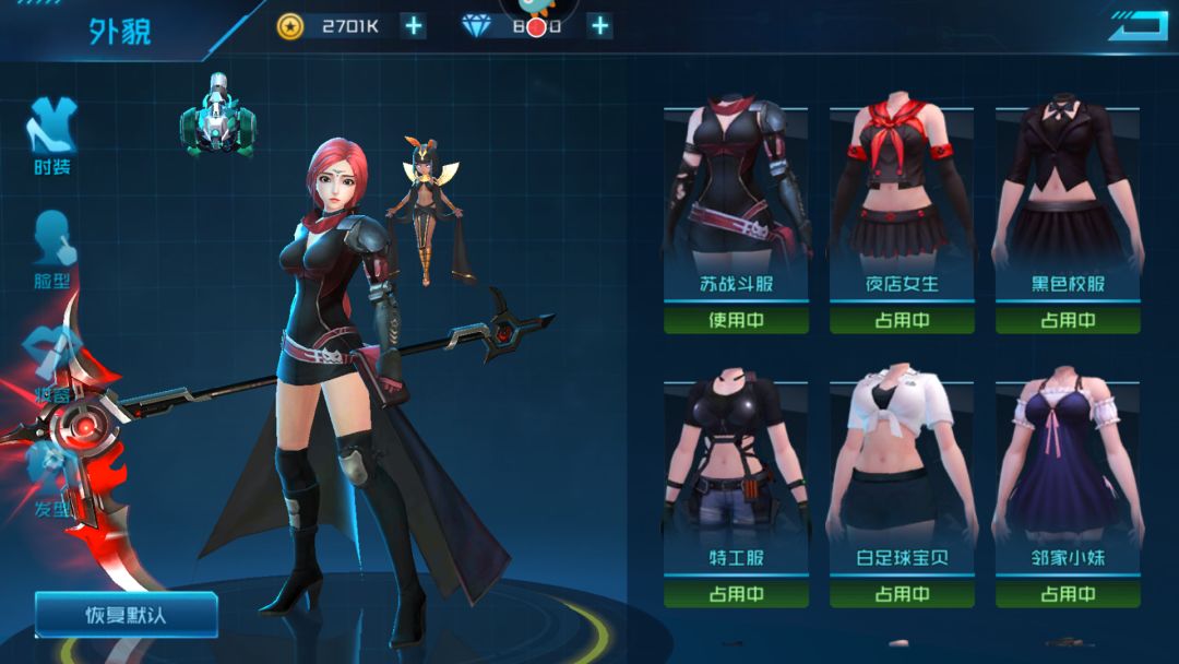长..枪配高马尾,官方已经给出了绝配发型,事实我觉的官配一般般,但也实在找不出更合适的发型了,毕竟目前发型还是太少,所以就用自带发型好了,只要把她的眼角微微上调一下就好了。服装的话,我选择了特工服,其实只要紧身显形一点的衣服都是可以的。