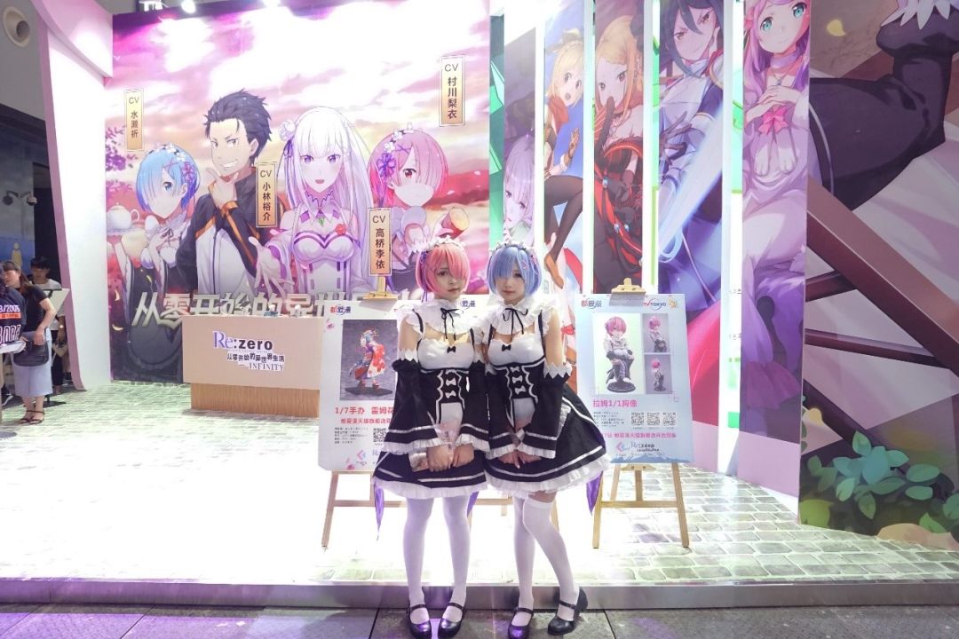 在漫展上不断有路人扮演的《Re:从零开始的异世界生活》coser来到《Re:Zero-INFINITY》展台打卡,其中还出现了一位超可爱的“野生”拉姆来到展位,和官方人员一起合影。