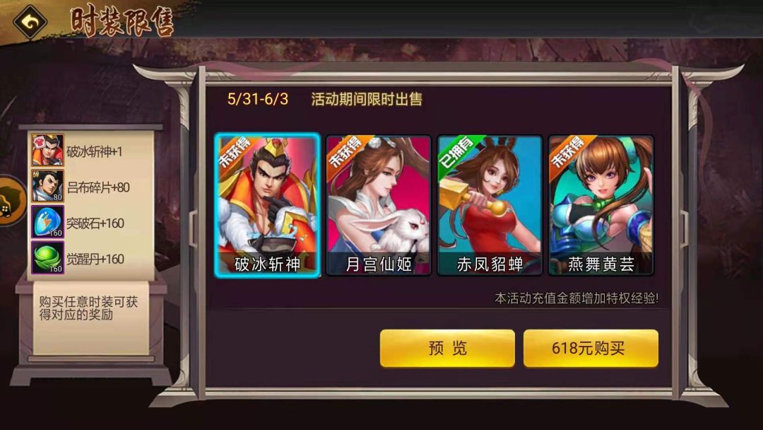 活动期间(6.11-6.14),非大型节假日时,系统每隔一段时间会安排一次团购活动,与平时特惠商店和折扣商店相比,团购的价格更亲民,而且能上团购货架的一般都是大众玩家急需的珍稀道具和武将碎片资源,此次的团购活动为大家精心准备了时装碎片和热门武将碎片等超值道具,最终惠利的价格一定会受到玩家青睐,急需招募心仪武将和提升战力的玩家,可别错过了如此低廉便可拥有和提升的良机。