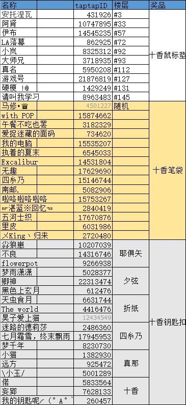 1、前十位晒出抽中十香截图的玩家获得十香鼠标垫 (以tap楼层为准)