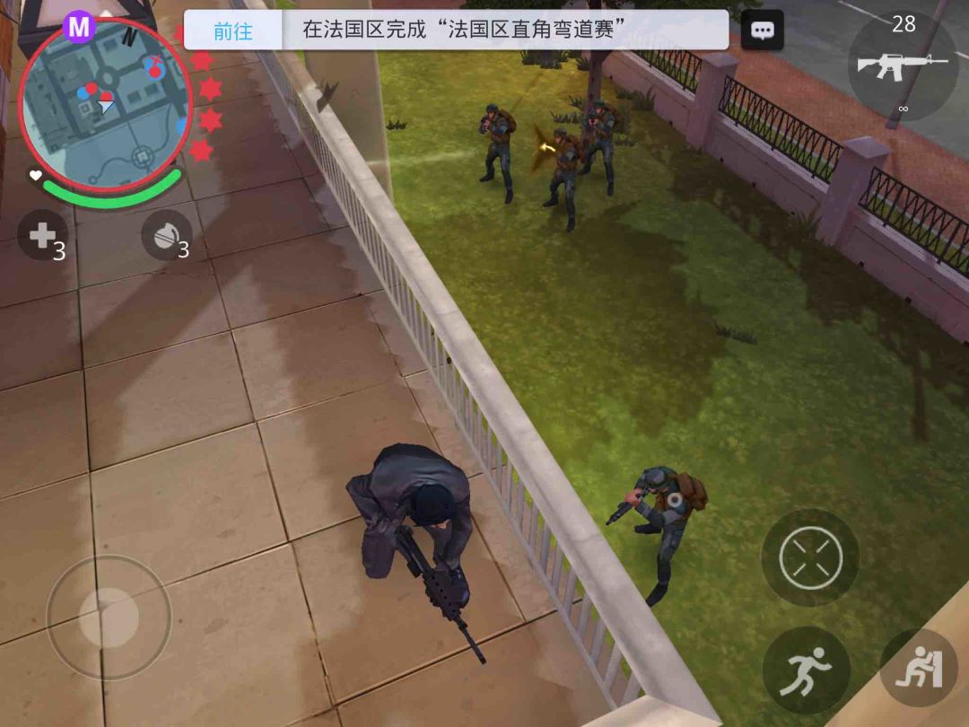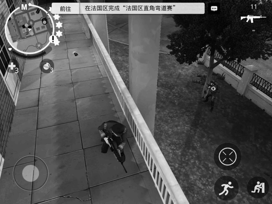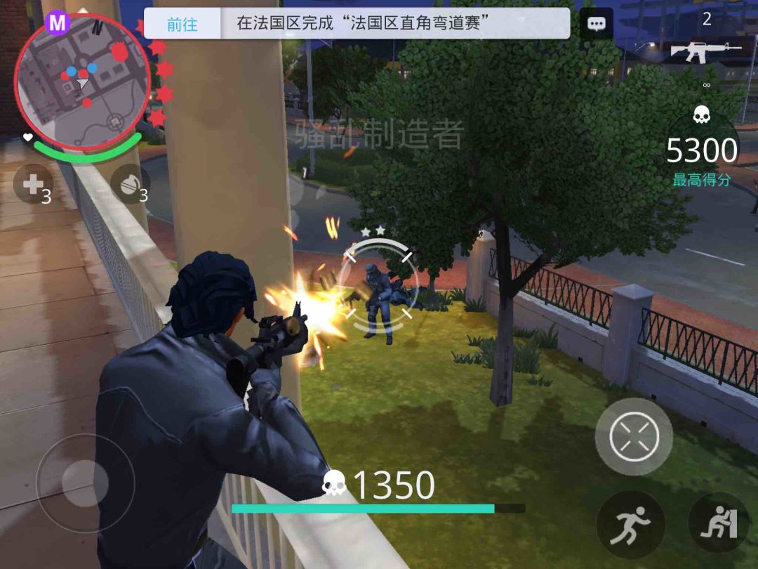 如图这里有个楼梯,上去到前面警察在这不太容易打到你而你打到他比较容易。这是我卡点的载图: