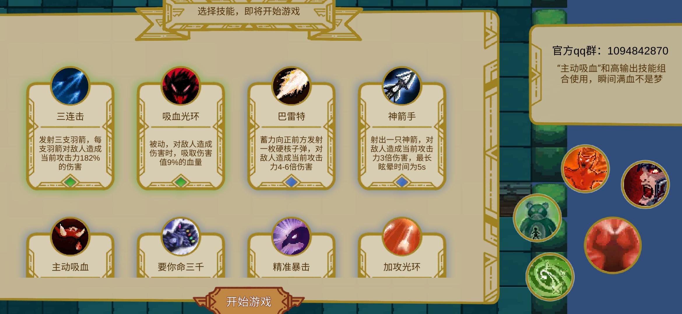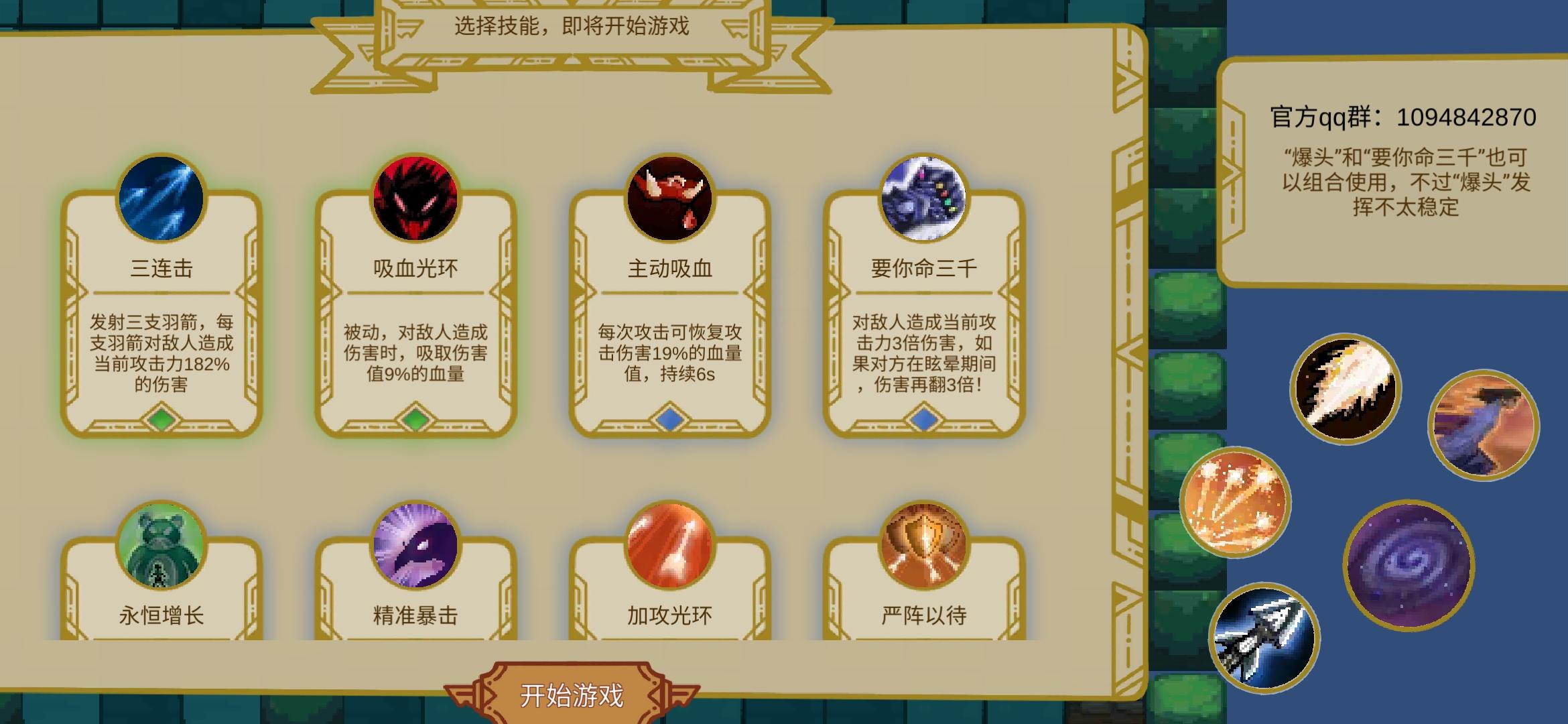 前几关随便打,直到神箭手配黑洞解锁,然后靠这两个技能掌握好眩晕时间可以无限控boos,另外几个技能可以随便带,可以带几个攻击技能,方便清小怪。