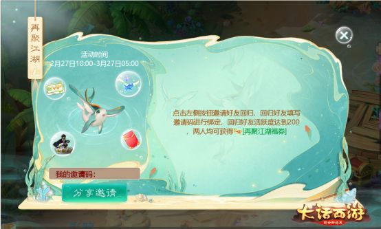 届时,玩家只需要通过游戏界面上的“再聚江湖”按钮进入活动页面,即可点击“分享邀请”按钮召集昔日的好友回归。