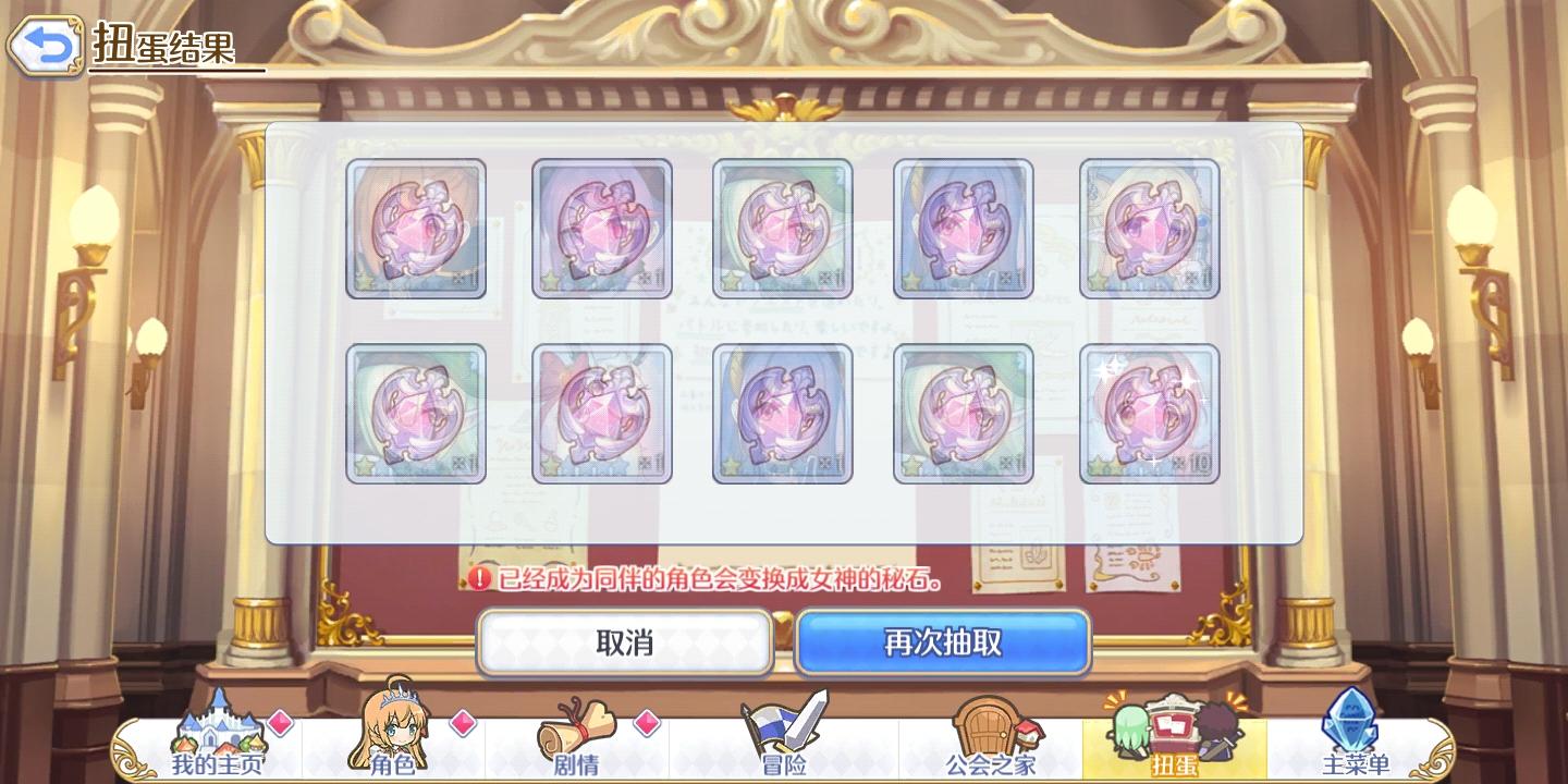 (눈_눈)(是不是极其舒适?)Ծ‸Ծ10连都是石头这一方面很令人痛心,还有彩卡可能抽重这方面就很不好了,抽重复的概率很低,需要改进,顺带发一张自己的阵容图片
