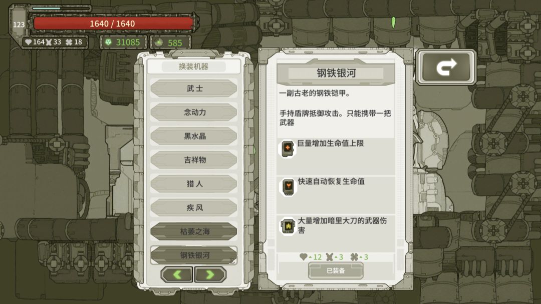 推荐装备:钢铁银河+暗里大刀(能量剑也可以)