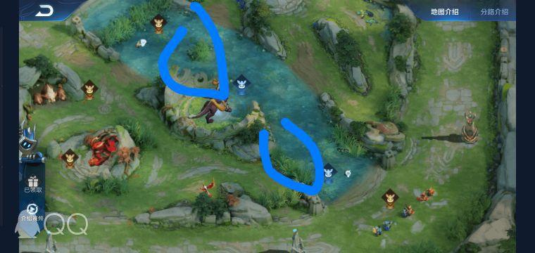 开局有偷猪能力的偷猪,没有也要看对面打野红蓝开,辅助跟着基本大部分中单都能偷。对面打野云中君,老虎,玄策开局占河道视野,防反野,快速清线,注意自己野区。游边没抓到人效率高的帮助边路拿河蟹。清线快于对位可以优先支援或者预判卡对面支援位置(注意对面卡你回防路线,如图)
