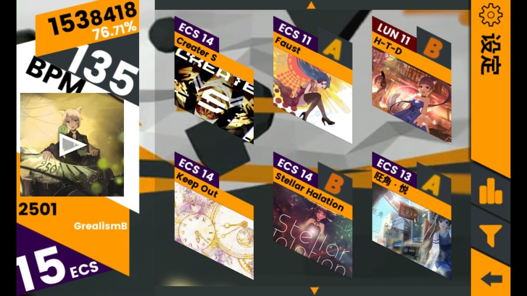 另外,最高难度打上A以后可以解锁隐藏难度ECS,也玩了几首(能上A都不错了)(๑⁼̴̀д⁼̴́๑)