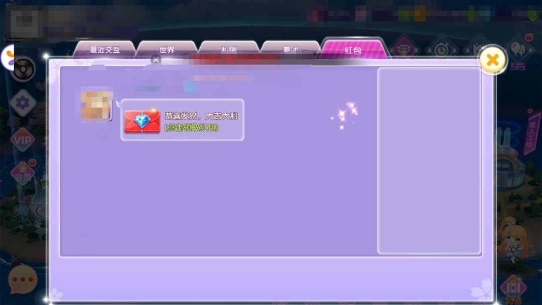 不仅如此,还剩下一个得乐钻的小方法,那就是抢红包了,舞团和大喇叭上都能发红包,每到结婚或者节日的时候,都有很多玩家在喇叭上发红包庆祝,还有到了过年的时候,官方也会指定导师来给我们发红包,一发就是几千几万的发,这个时候就要动动自己的手指抢一抢,就可以得乐钻了,至于多少,得看大家的运气了!