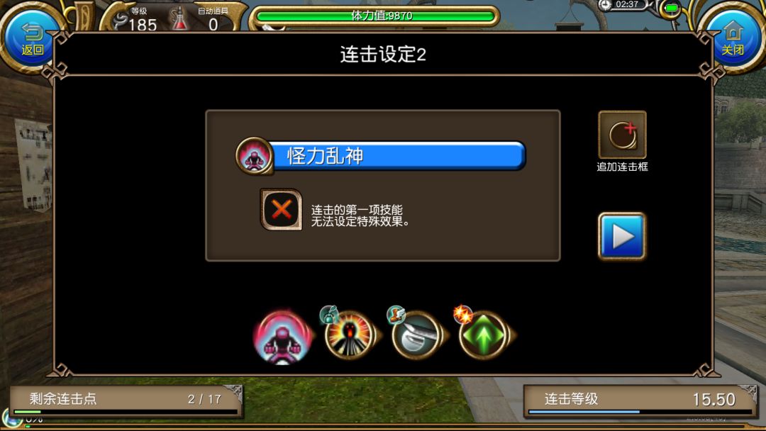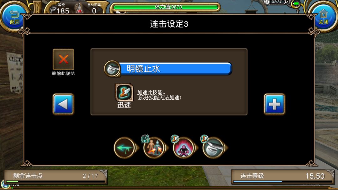 一蓝分身,并且有怪力加功回的buff,配合明镜百爆可以来一波高速回蓝。但是本人不推荐这个连击,因为这个连击太长,放分身时间过长,如果碰到灵活boss,需要到处放,就很拖时间,耽误输出。