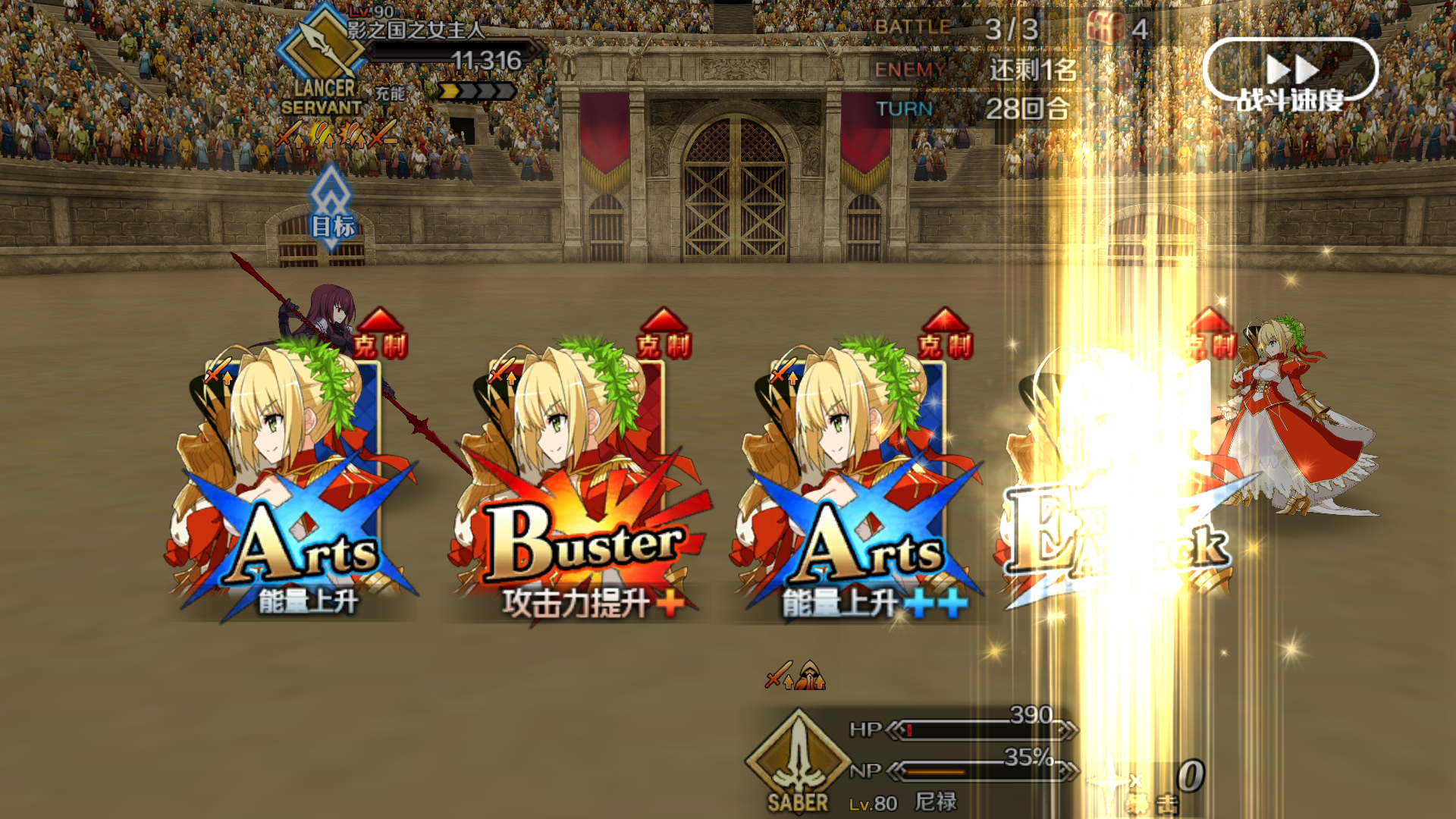终于,尼禄祭各高难通关,打爷爷时bb都被即死了