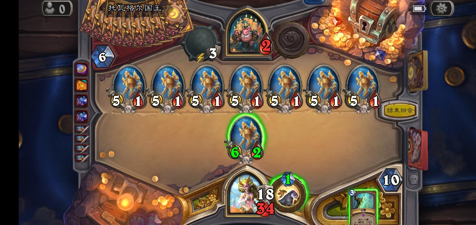 这局我用德鲁伊打,选牌都选任务的,这个boos把我的蜡烛暴露者给复制了,之后一直想要解我场,但是因为亡语解不掉,要是打脸我早就输了