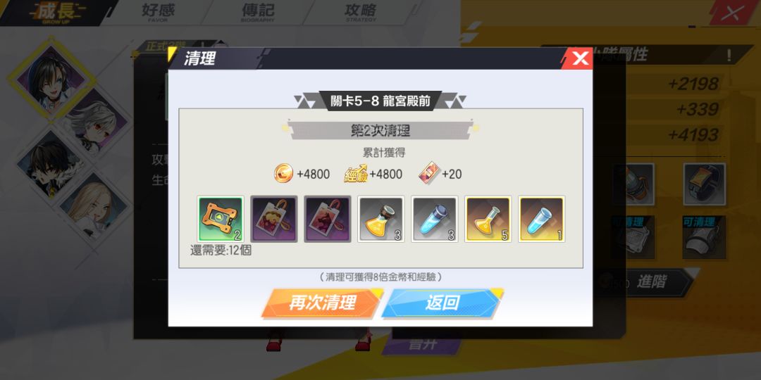 각 단계를 클리어한 기록이 있으면 단계의 하단부 주황색을 눌러 보상만 수령 가능합니다