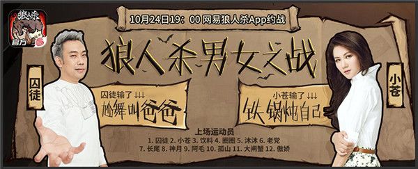 而在发布会结束后不久,我们的电竞女神小苍和人气主播囚徒就开启了“头铁”模式,对男女生在狼人杀对局中孰强孰弱在微博上展开激烈讨论,并定下赌约,约定于10月24日晚19点在《狼人杀官方》游戏内进行比赛并开启直播,并以熊猫直播投票的结果决定胜负。微博的围观群众纷纷大呼过瘾!并表示一定要围观这场“赌上性别的对决”!
