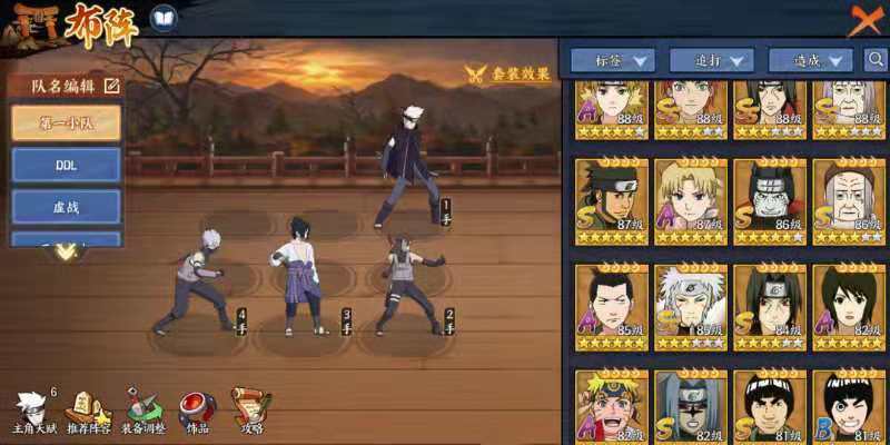 卡卡西【暗部】:普攻流的典型人物,先有天藏进行标记叠加,再加上经过佐助和雷主的属性加成,暗卡一回合一个敌方选手还是很容易实现的,毕竟暗卡本身还掌握着”暗部伏击战术”。