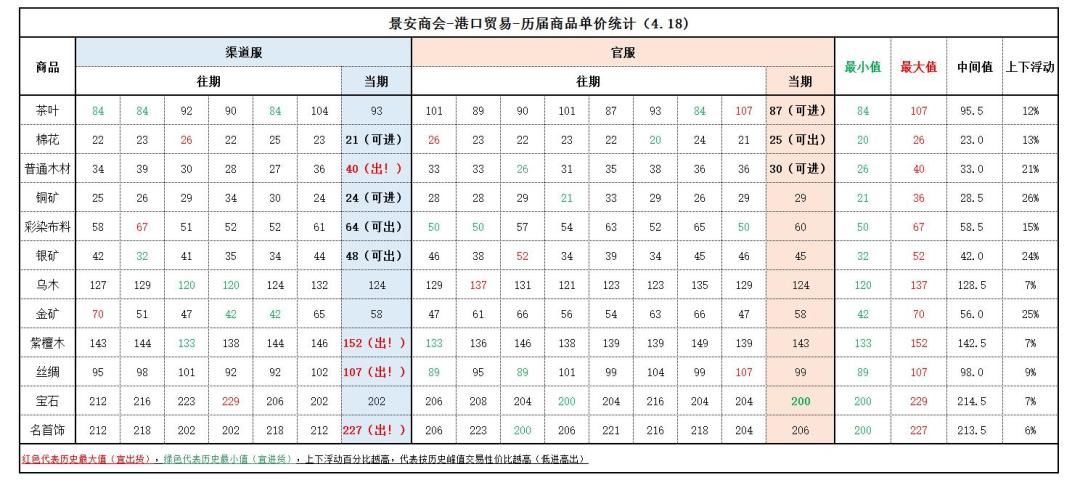 港口贸易的系统货物价格分渠道服和官服,两者刷新价格是不同的~