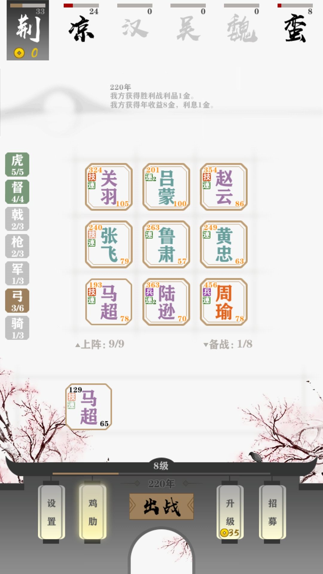 感觉游戏已经玩到头了。玩的都是炼狱模式,四都督五虎将很强,前期不用刷新,有钱就升级,前期随便弄几个羁绊,不死就行,等到九人口满了就搜四都督五虎将(前期看到有就拿),拿到就基本赢了,后面刷新升星就行了。基本把把赢。但是我当开了蛮族,我就懵了,无脑只拿象兵基本都是完胜,希望开玩家匹配,再多些玩法,鸡肋就很好,超出预期。