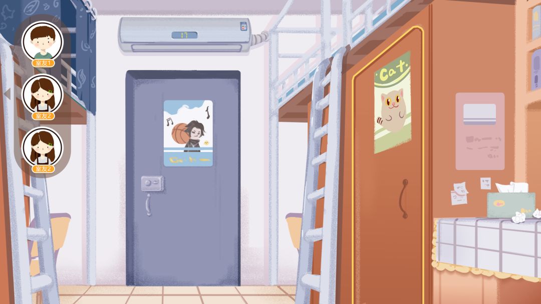 先放一张你们的寝室,左边是你们的室友,寝室采取有一套专门的管理制度,这套制度能让你在这里称王称霸也可能导致你被室友驱逐,悄悄告诉你们可以混寝