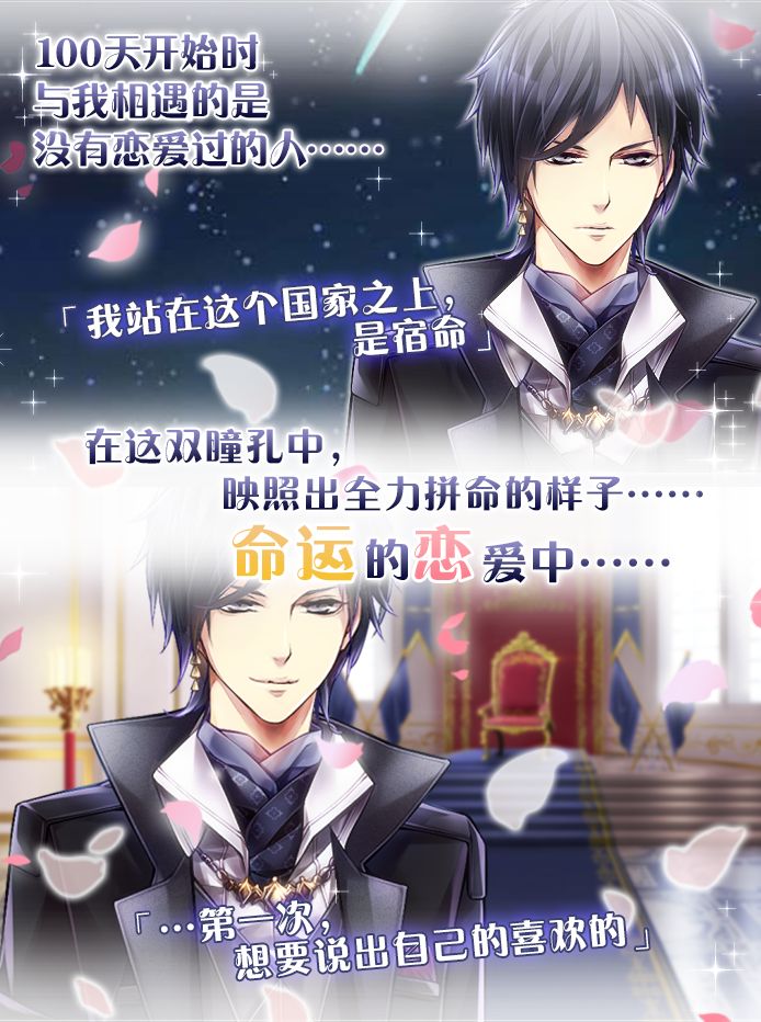 在100日开始的时候,在脑海里留下最深刻印象的是,有着深邃瞳孔和高贵严肃的邻国帝王。这样的人,是绝对不能与他产生任何感情的人!可每一次的相遇,都在不断的拉近与他的距离。这双严峻的双眼,开始捕捉你的身影。