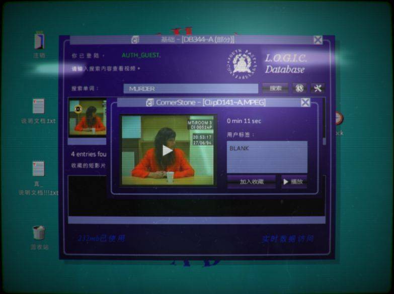 6.《她的故事》通过观看影像资料来分析线索!进行解谜!从而解开最终真相!更加高大上版的《手机疑云》这个是警察局老古董电脑疑云!相比其他互动视频游戏!这个呈现方式要简单的多!