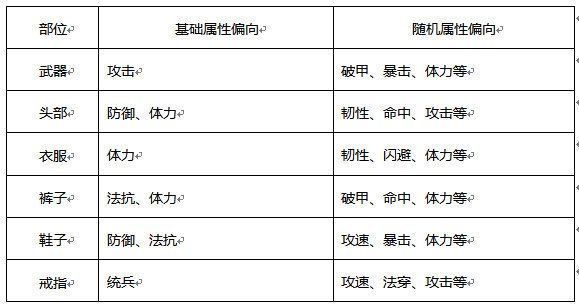 装备各部位属性图