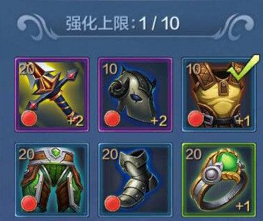 不同等级的装备可强化的等级上限不同,等级越高的装备,可强化的等级也越高,举例来说:1级的衣服强化上限为510级的衣服强化上限为1020级的衣服强化上限为20英雄更换装备时,可以勾选把当前装备的强化属性转移至新装备上。