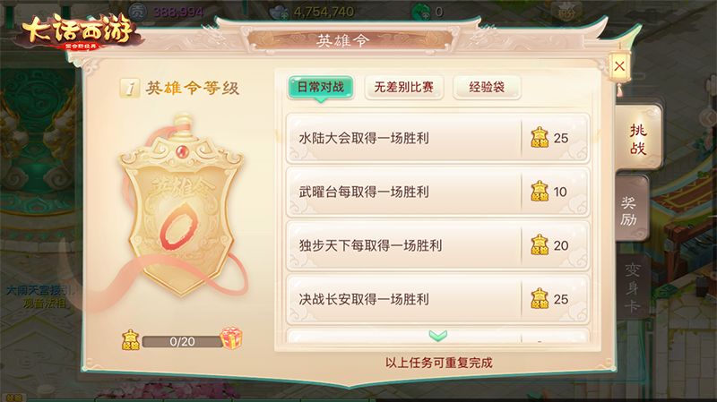 想要参与本届无差别PK赛的玩家,只要角色等级达到0转80级,就可以三人及以上组队,前往长安城无差别接引人处进行报名。现在玩家还可以前往无差别PK大使——崇武处领取英雄令道具。玩家通过参加日常对战、无差别PK赛等任务可以获取经验,为英雄令提升等级,达到相应等级就能够解锁丰厚的礼包奖励!