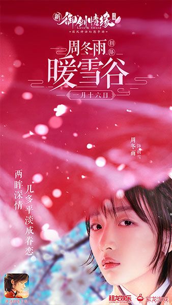 踏过冰冷的雪原,在花瓣飞舞的暖雪谷拾起匆匆流年,少女穿过世间轮回,来到你的面前。“新”《御剑情缘》将在1月16日开启焕新公测,游戏力邀当代金马影后周冬雨倾情代言,出演“新”《御剑情缘》首席主角“初雪”。这将是周冬雨首次跨界牵手游戏领域,更是首次突破次元壁,将一位手握命运轮回,清新空灵的少女演绎得活灵活现。