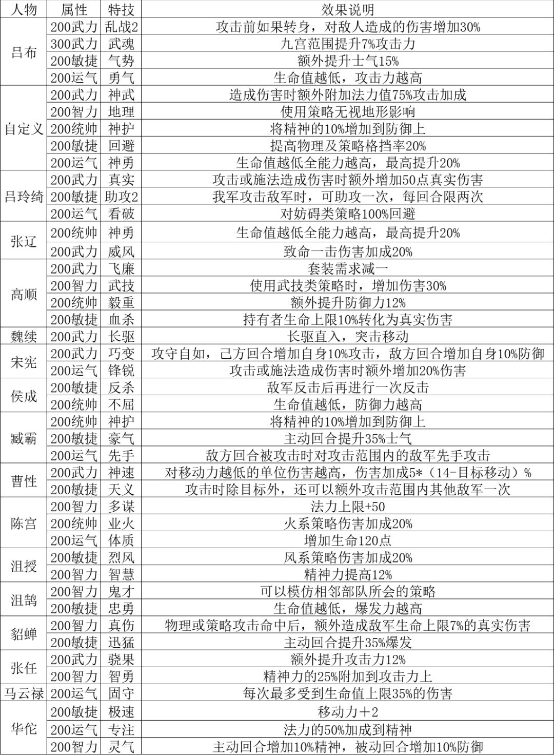《三国志吕布传》人物隐藏技能表分享