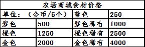 首先,对于在商店买食材方面没有什么需要说的,食材的价格是没有浮动的,只有购买金币时有浮动,但是我们种菜就是要合成食物的,如果要是拿家园币去买金币可是完全不值得的,金币的获得途径要比食物多得多。接下来,为大家献上农场商店数据。