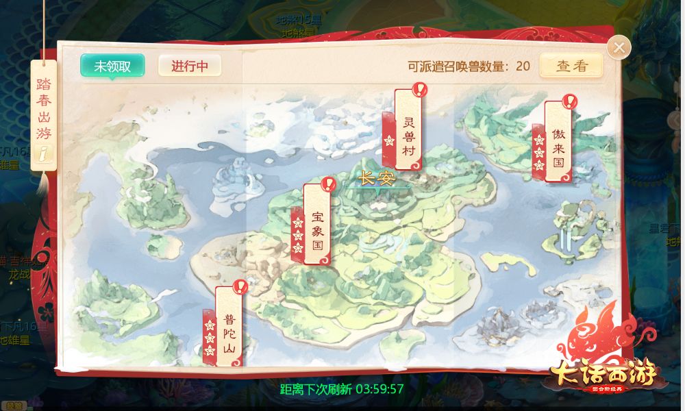 在疫情期间,大话手游积极响应国家号召,呼吁侠士们减少不必要的外出以及各种聚会,不过大家可以在游戏里的“踏春出游”活动中派遣召唤兽前往不同的地点,代替自己出门踏青,完成任务就能获取奖励!