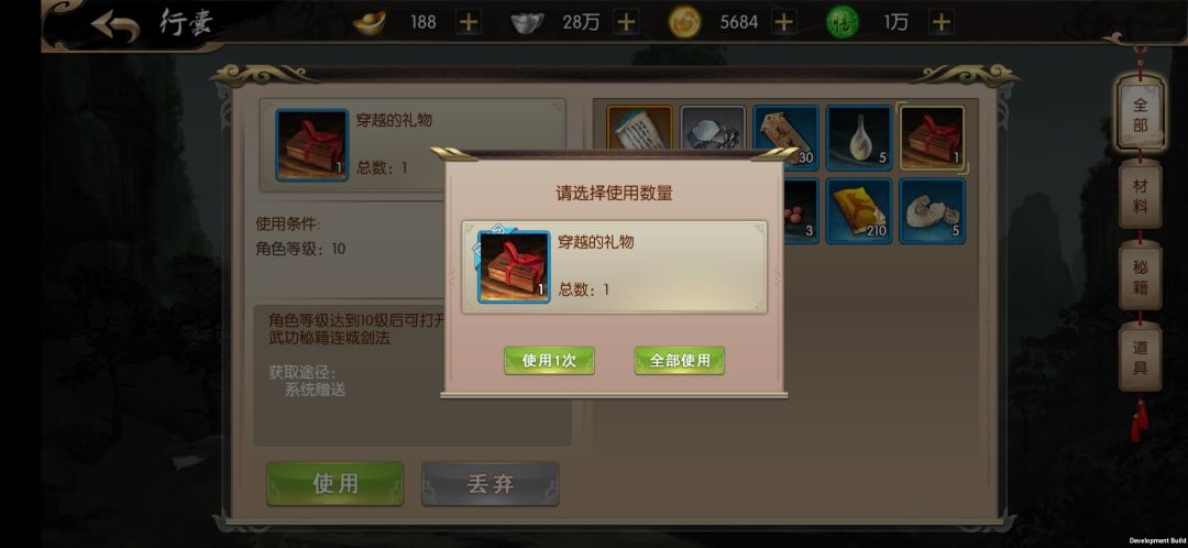 这些武学会等到你10级后打开礼包赠送