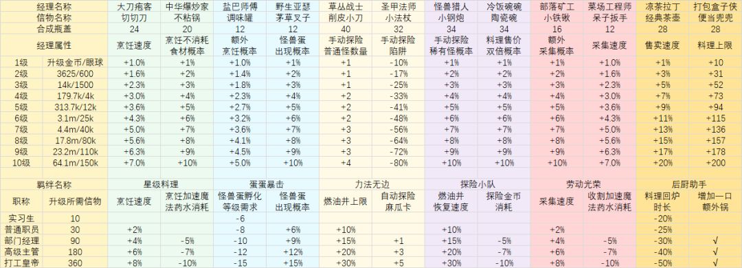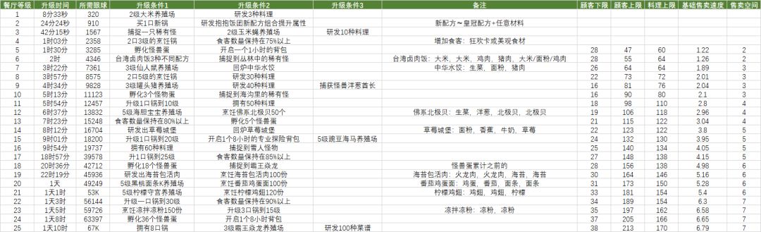 *表格没更新,里面的数据都是最新的,因为游戏没开新图,没有新食材,也没新菜。
