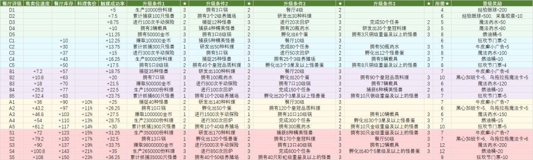 3餐厅等级升级要求